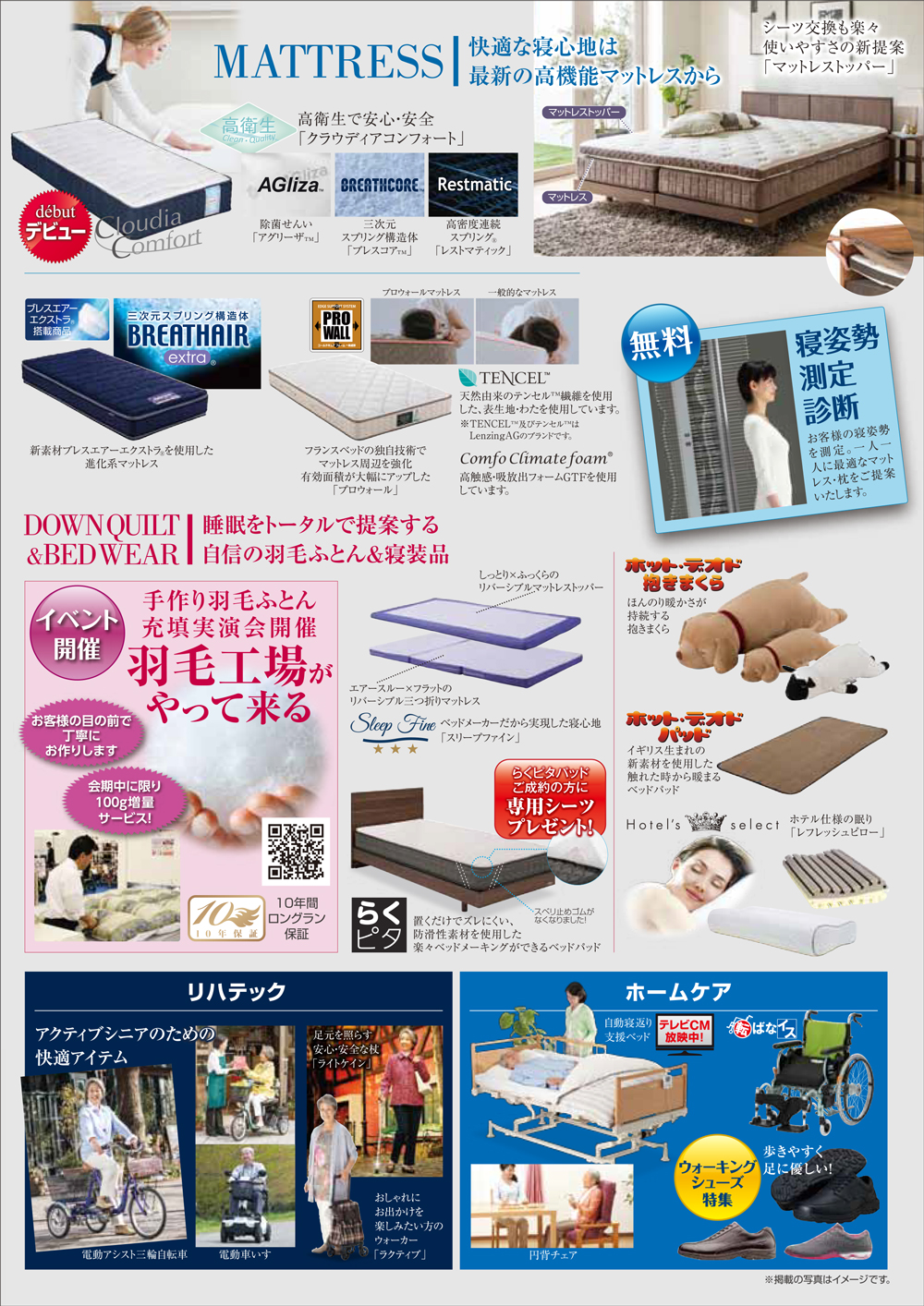 手作り羽毛ふとん 充填実演会開催!本セール会期中に限り、100g増量サービス!お客様の目の前で丁寧に、フランスベッドの高品質羽毛ふとんをお作りします!