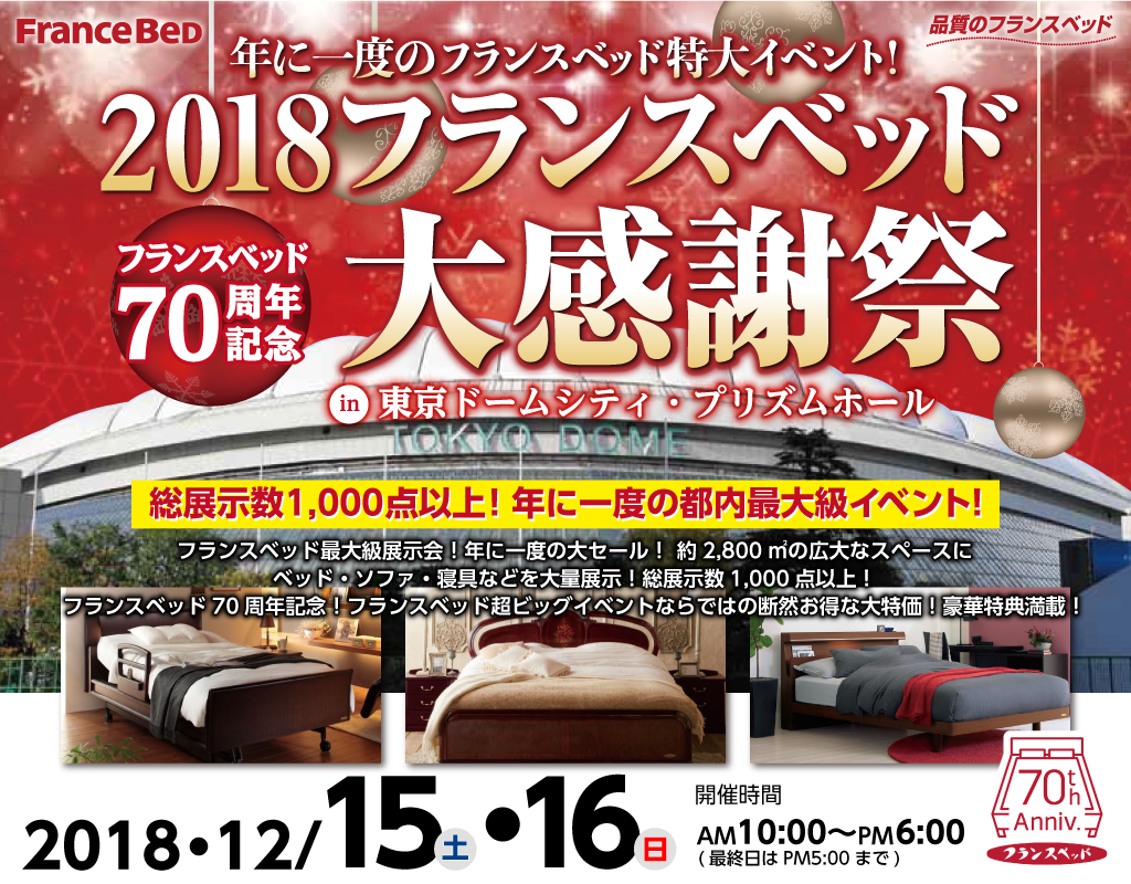 高品質フランスベッドを、年に一度の特別ビッグイベントならではの大特価でご提供! フランスベッド70周年謝恩企画といたしまして、70周年限定特別お買得商品もご用意! |