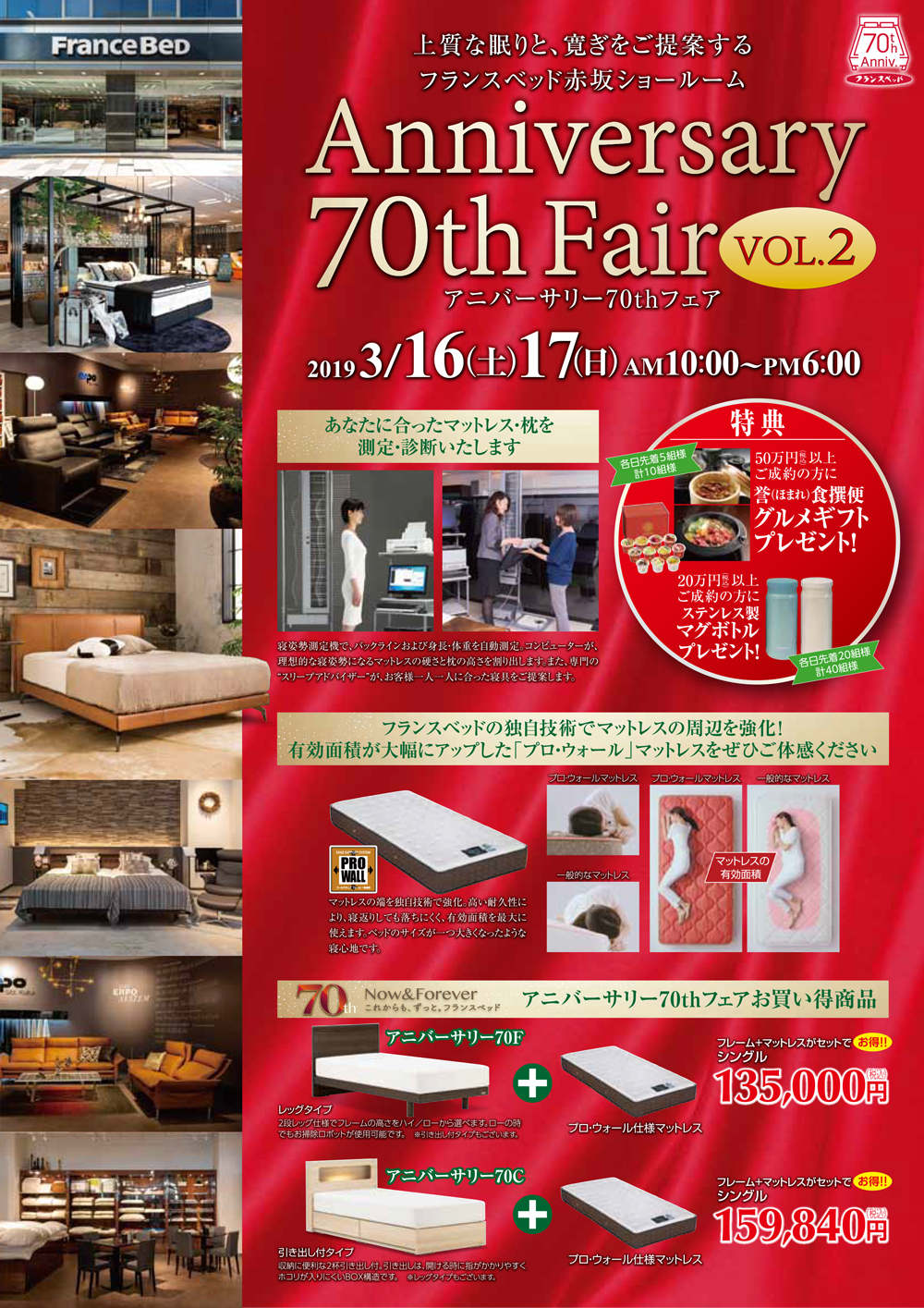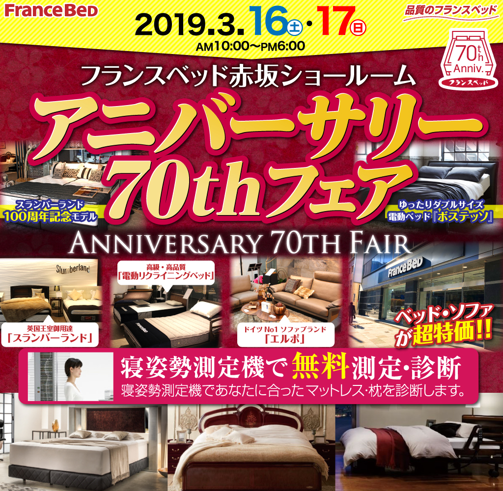 フランスベッド創業70周年記念モデルベッドも超お得に展示出品!