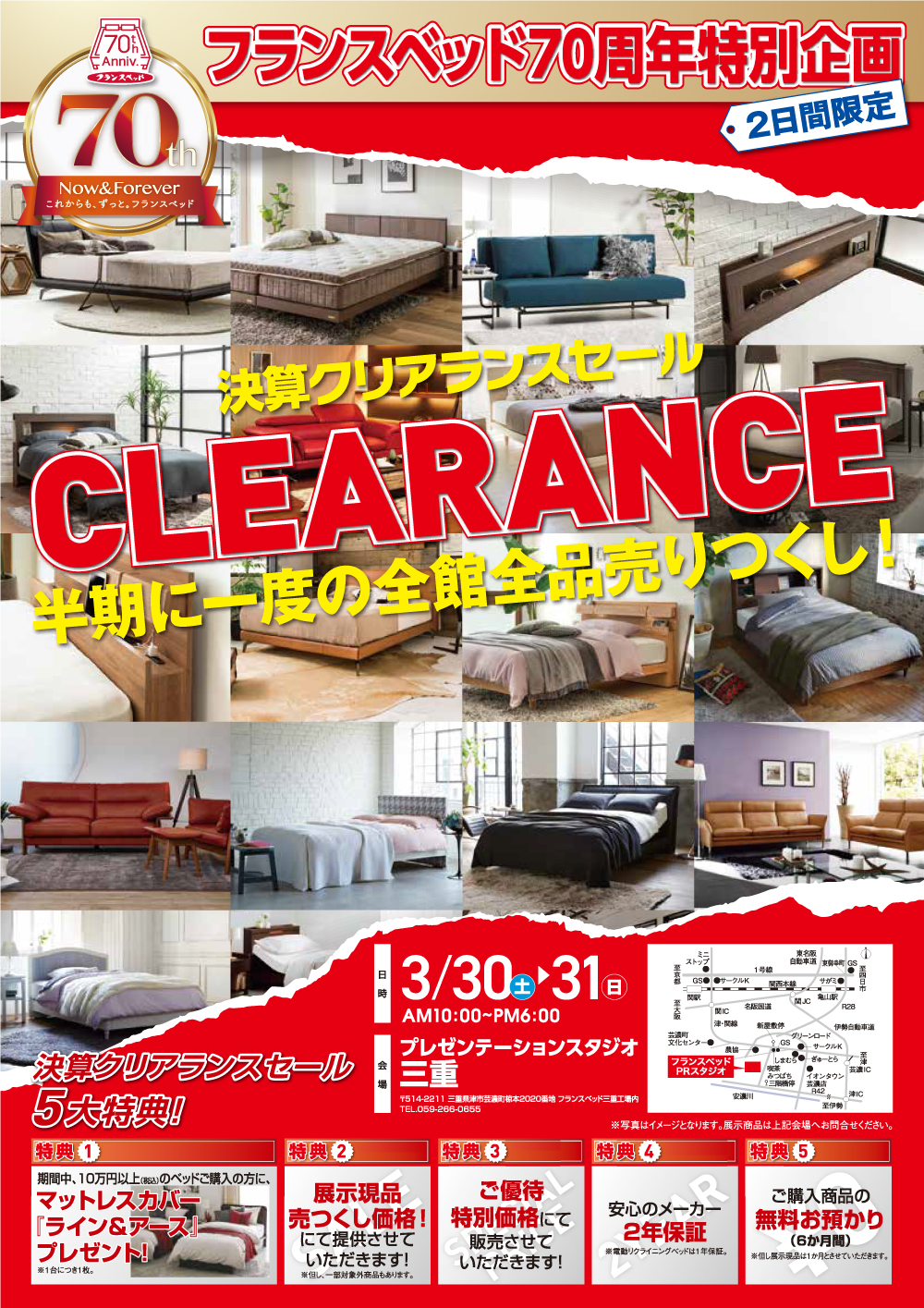 フランスベッド三重工場大開放・完全一掃セール! 新作、展示現品も全商品、超特価にて特別大処分! |