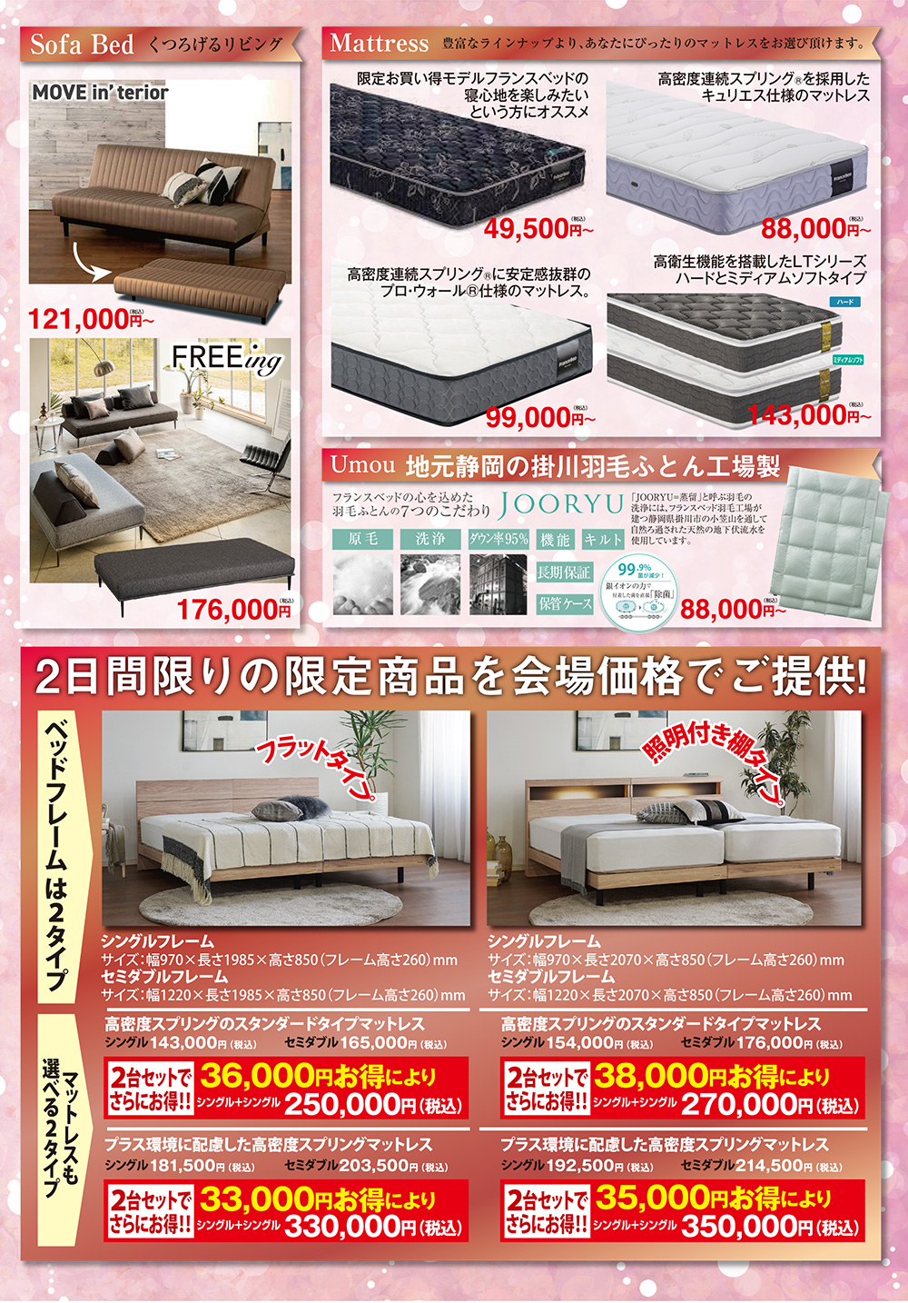 「2日間限り!」数量限定特価ベッドもお買い得! |