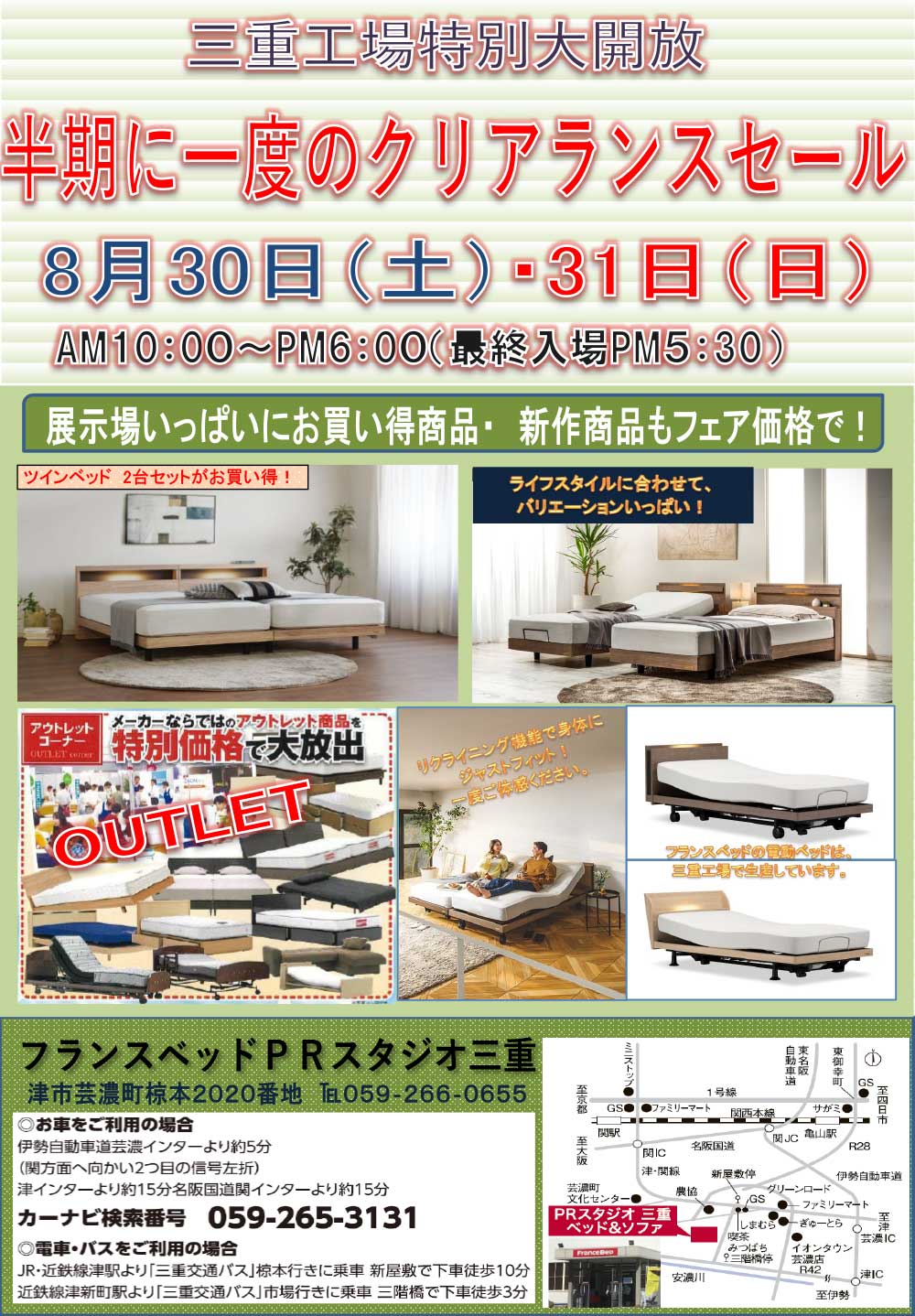 フランスベッド三重工場大開放! 新作、展示現品も全商品、特別ご優待にてご提供! |