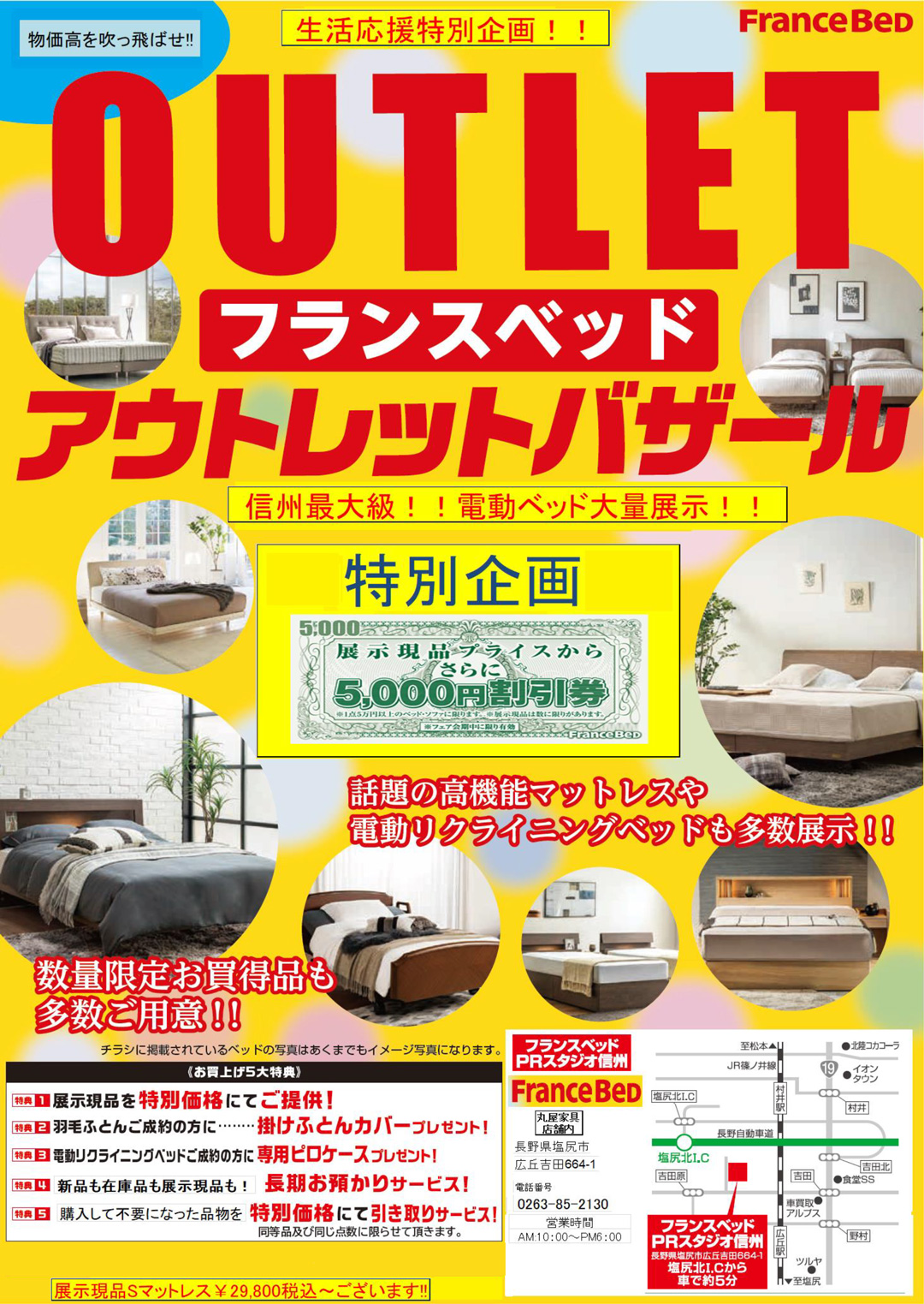 フランスベッドの集大成「ライフトリートメントマットレス」も、たいへんお得に出品、展示!存分にご体感いただけます!
