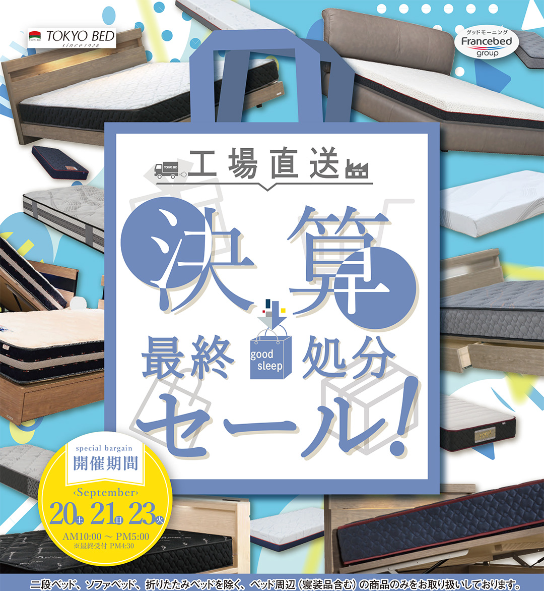 高品質ベッドを、東京ベッドの工場バーゲン特別イベントならではの大特価でご提供!展示品が無くてもご優待価格でご案内!
