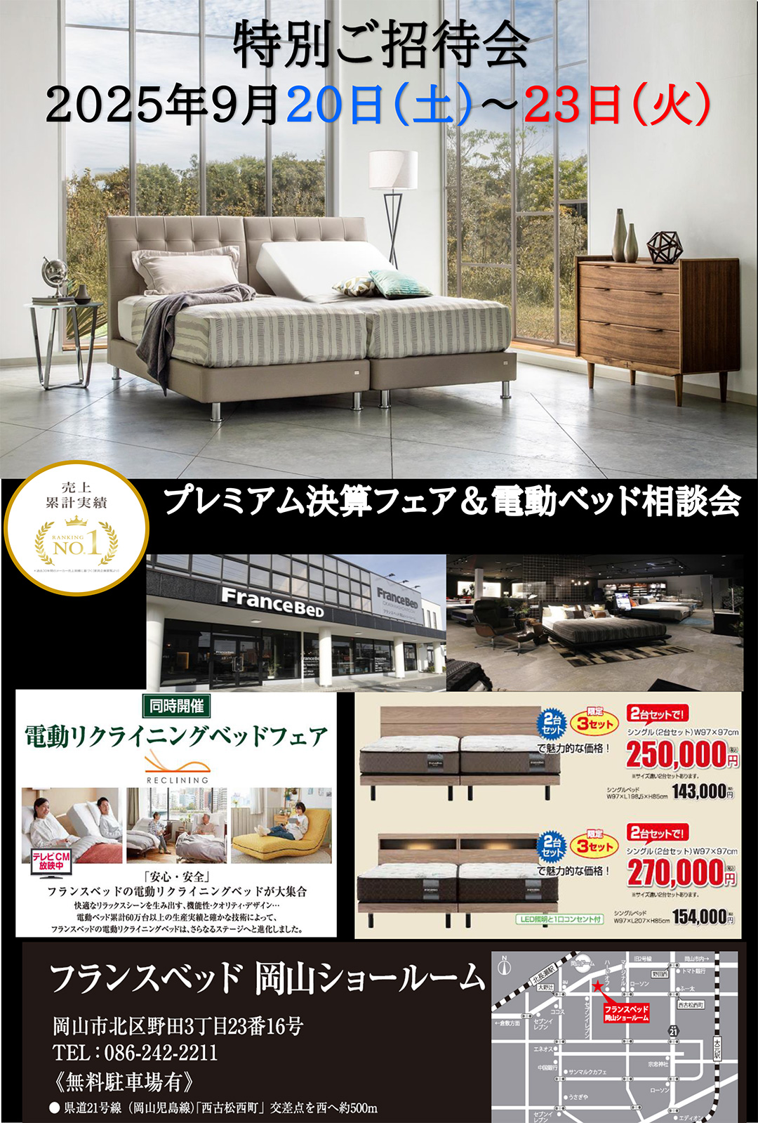 高品質フランスベッドをフランスベッド岡山ショールーム限定特別価格でご提供! |