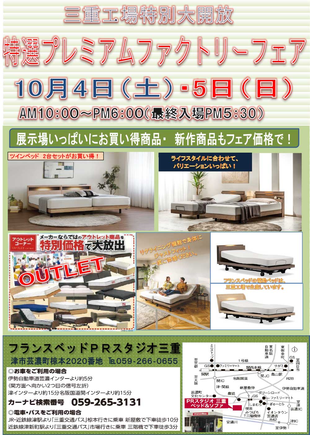 フランスベッド三重工場大開放! 新作、展示現品も全商品、特別ご優待にてご提供! |