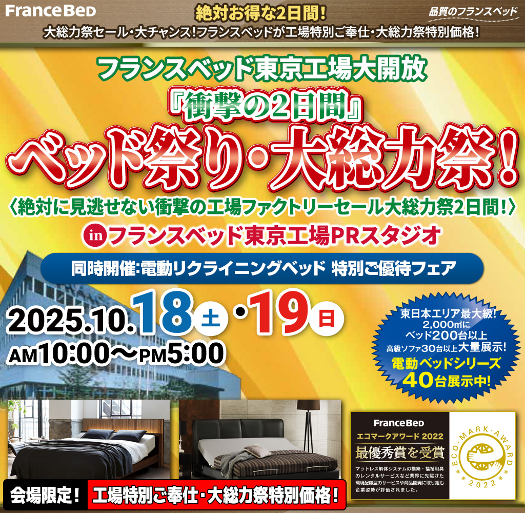 大人気!フランスベッド東京工場PRスタジオ認定商品、及び、限定品コーナー併設! |