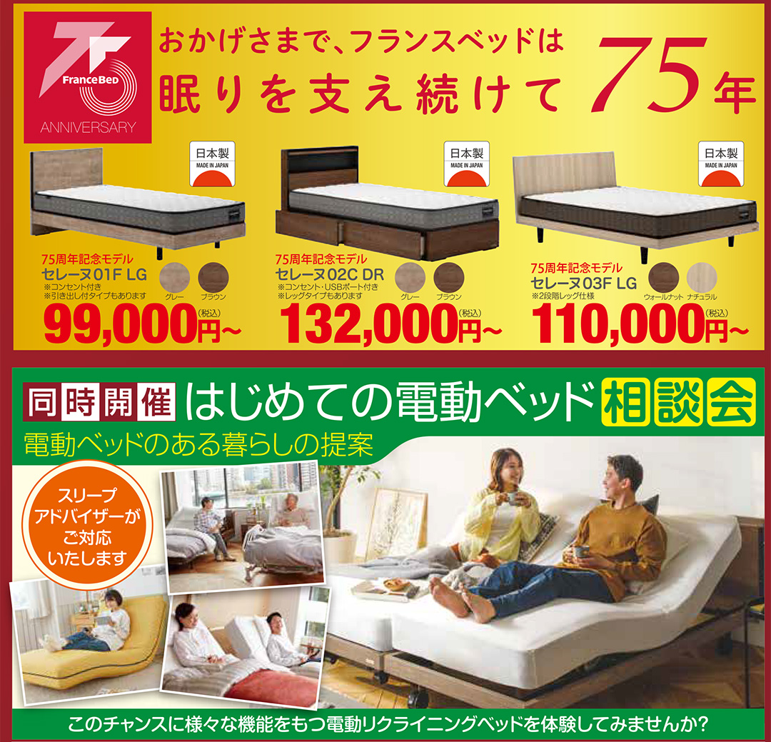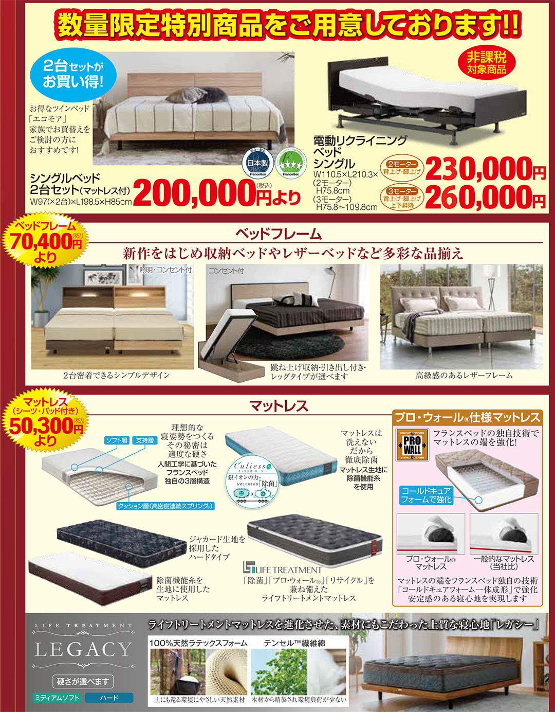 限定特別価格にてご提供いたします!たいへんお得なフランスベッド特別セールです! |