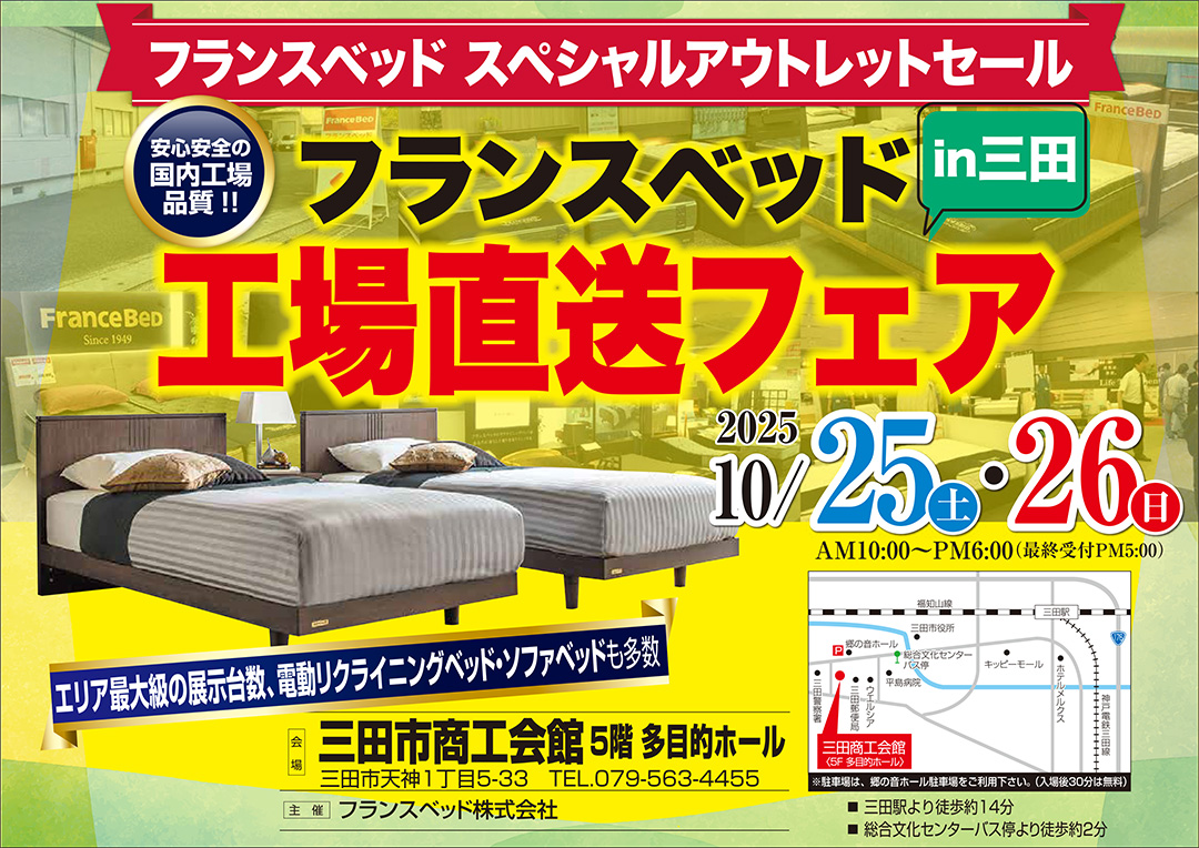 フランスベッド工場直送スペシャルフェア! 新作、展示現品も全商品、工場直送フェア特別価格にてご提供! |