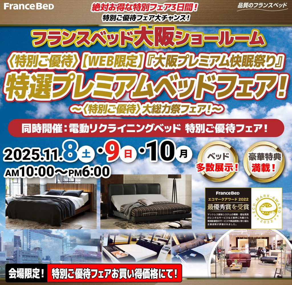 高品質フランスベッドをフランスベッド大阪ショールーム限定特別価格でご提供! |