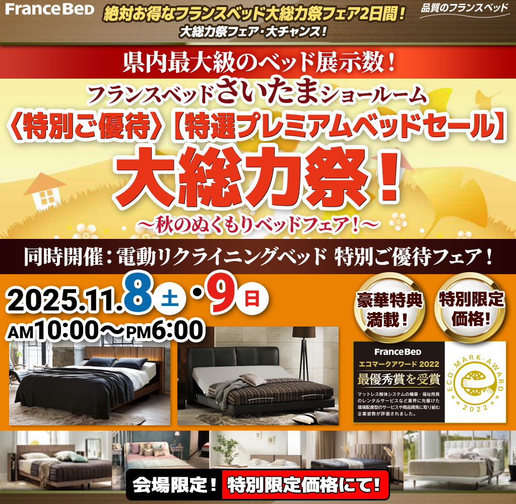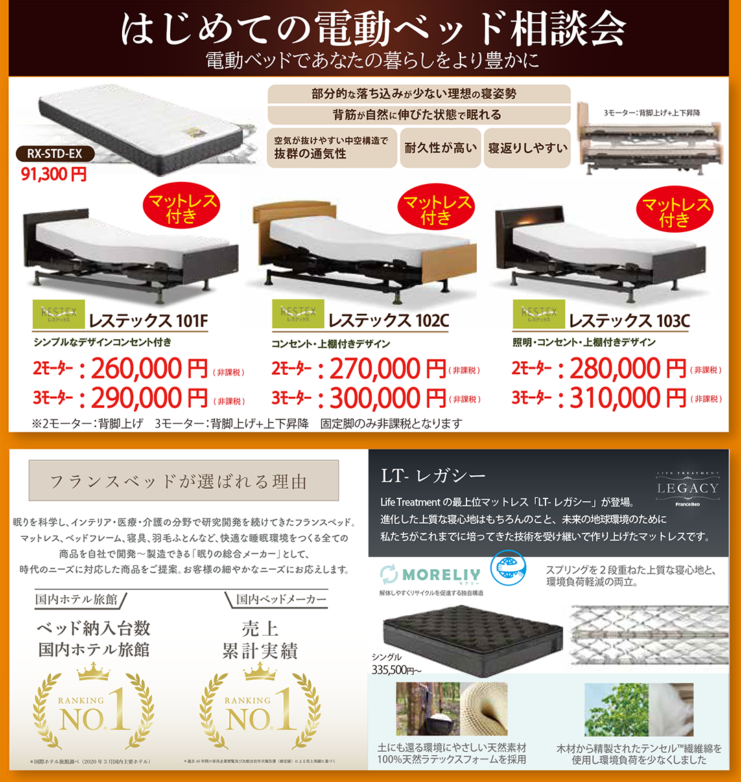安心・安全・静音、フランスベッドの『電動リクライニングベッド』もフェア特別価格! |