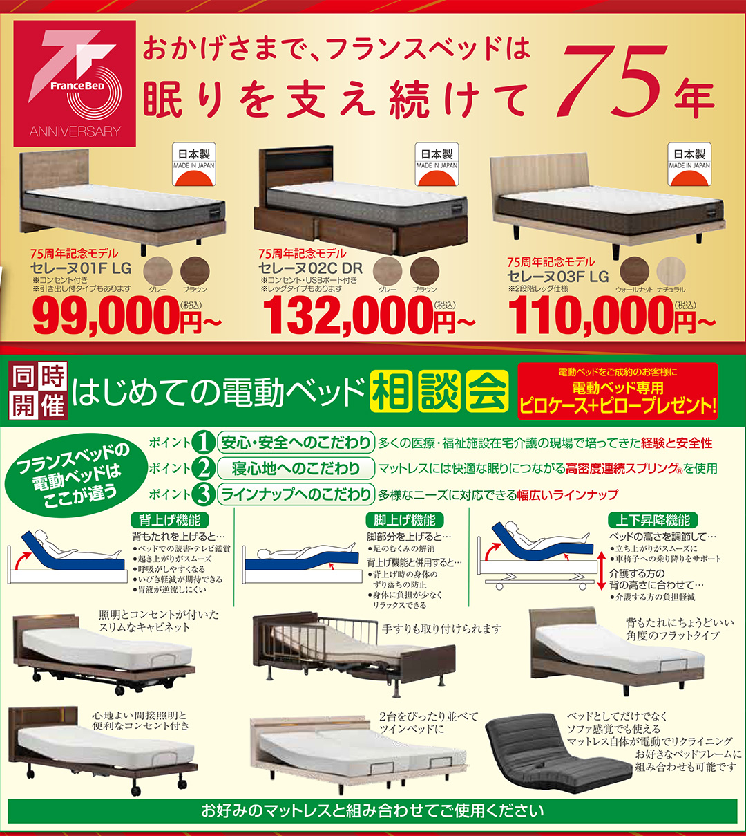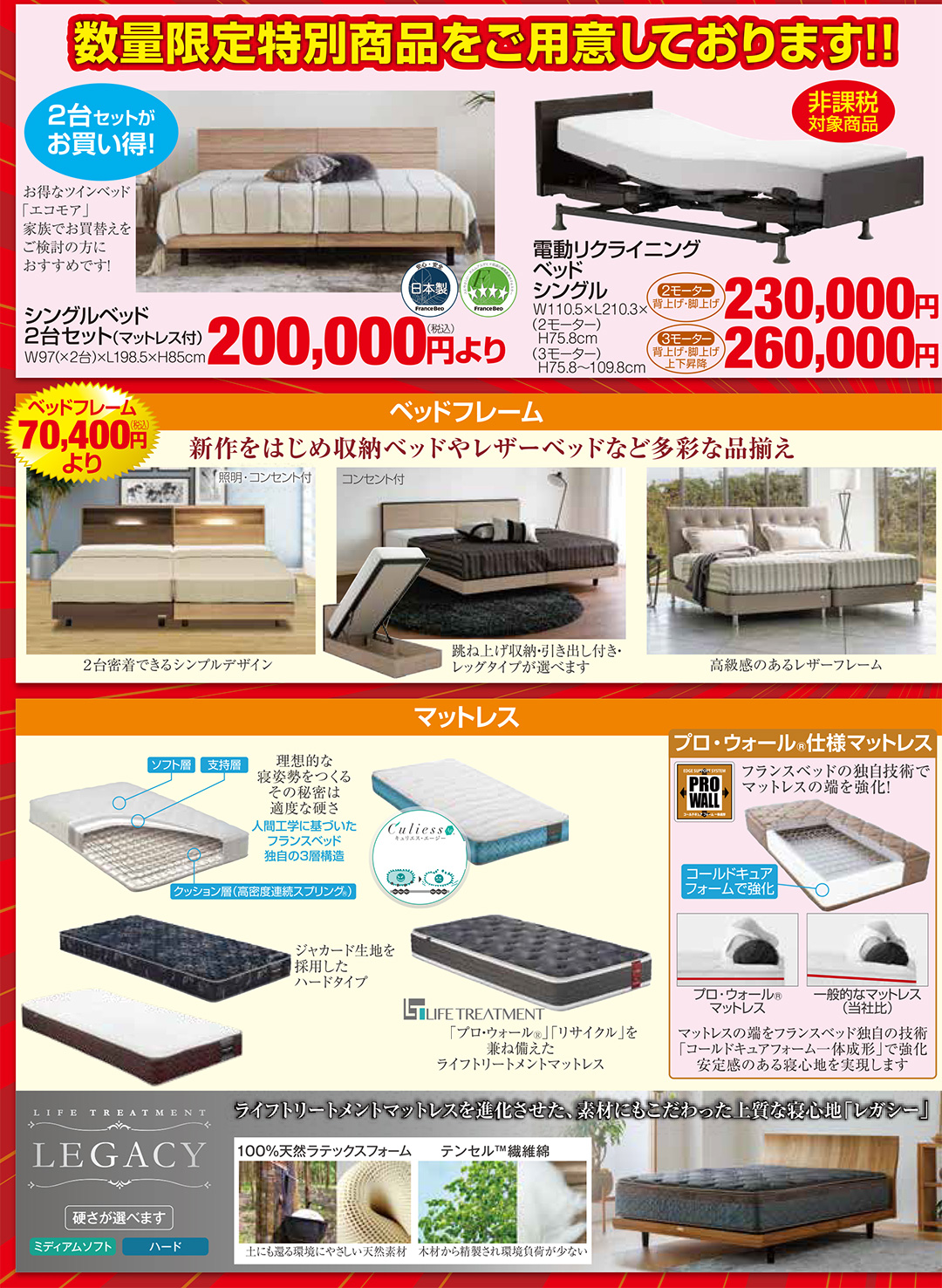 高品質フランスベッドを、特別イベントならではのプレミアム特別価格でご提供! |