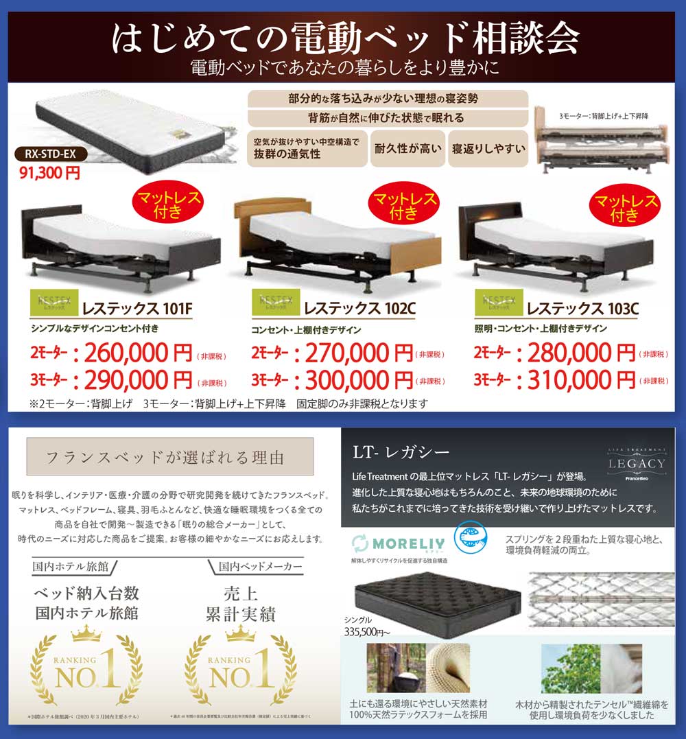 安心・安全・静音、フランスベッドの『電動リクライニングベッド』もフェア特別価格!