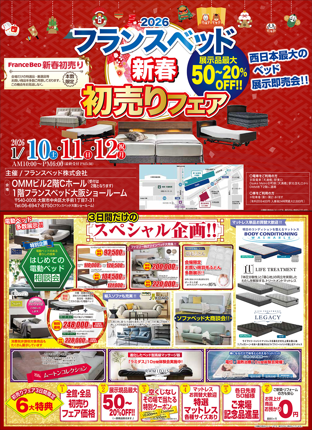 高品質フランスベッドをフランスベッド大阪ショールーム限定特別価格でご提供!