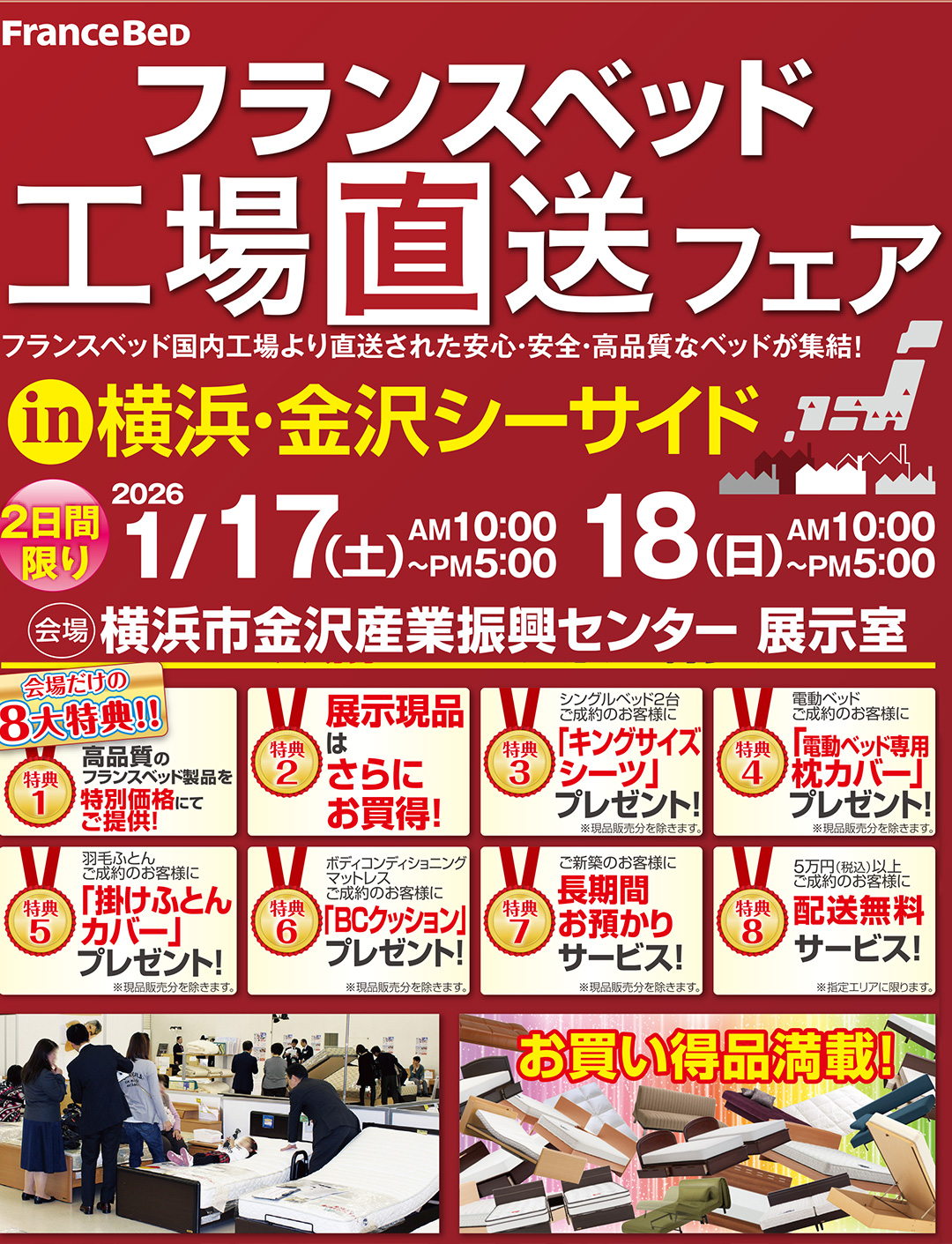 特別開催の工場直送フェアならではの、掘り出し物も工場直送フェア特別価格にて盛りだくさん! |