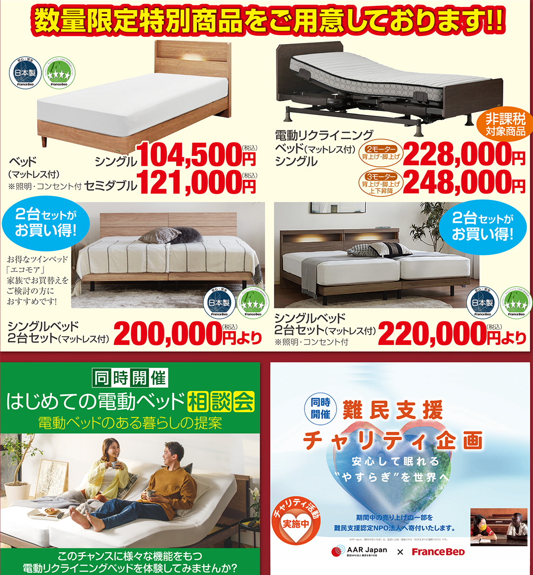 高品質フランスベッドを、特別イベントならではのプレミアム特別価格でご提供! |