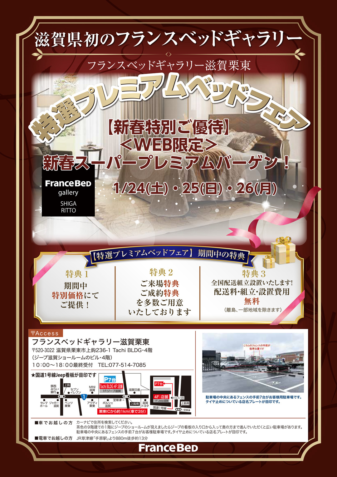 フランスベッドギャラリー滋賀栗東グランドオープンスペシャルフェア! 新作、展示現品も全商品、アウトレット特別価格にてご提供! |