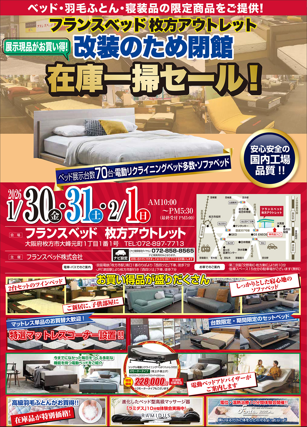 フランスベッド枚方アウトレット・全品特別ご優待スペシャルセール!