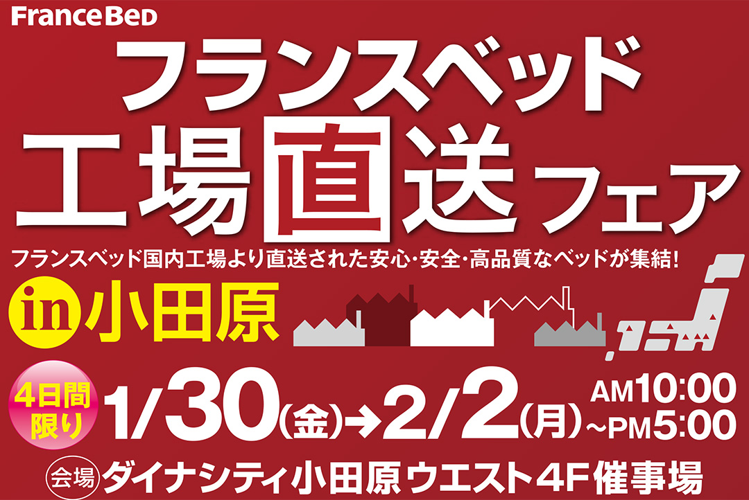 フランスベッド工場直送フェアスペシャルフェア! 新作、展示現品も全商品、特別フェア特別価格にてご提供! |