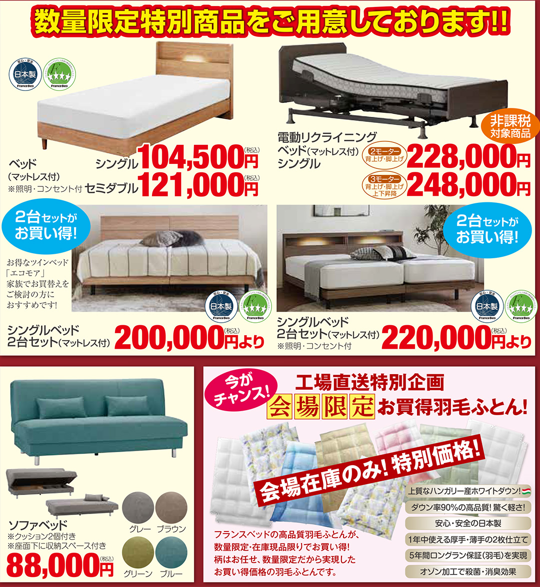 高品質フランスベッドを、特別イベントならではのプレミアム特別価格でご提供! |