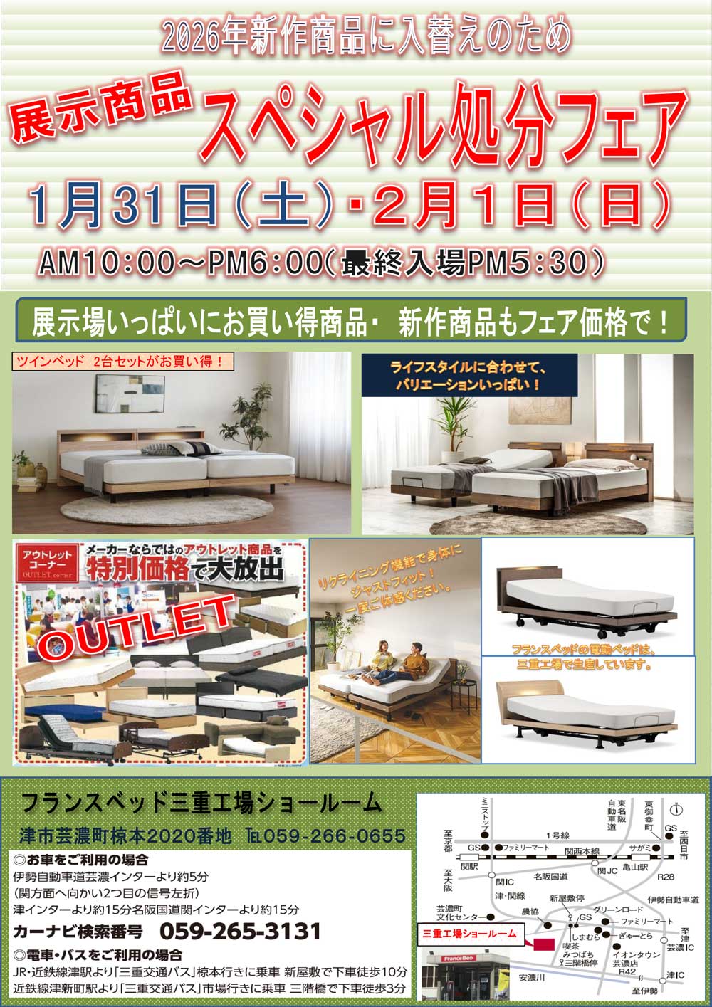 フランスベッド三重工場大開放! 新作、展示現品も全商品、特別ご優待にてご提供! |
