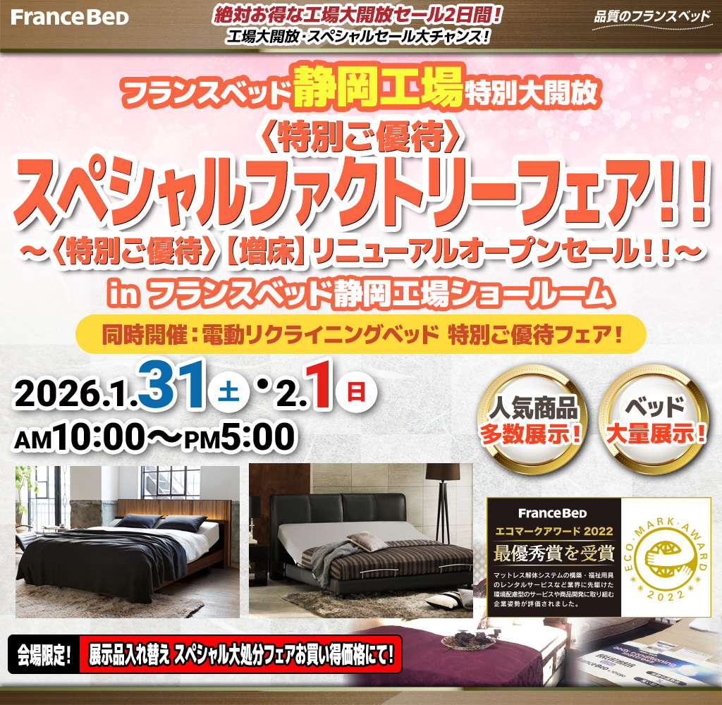 | 開催会場 | フランスベッド静岡工場ショールーム |