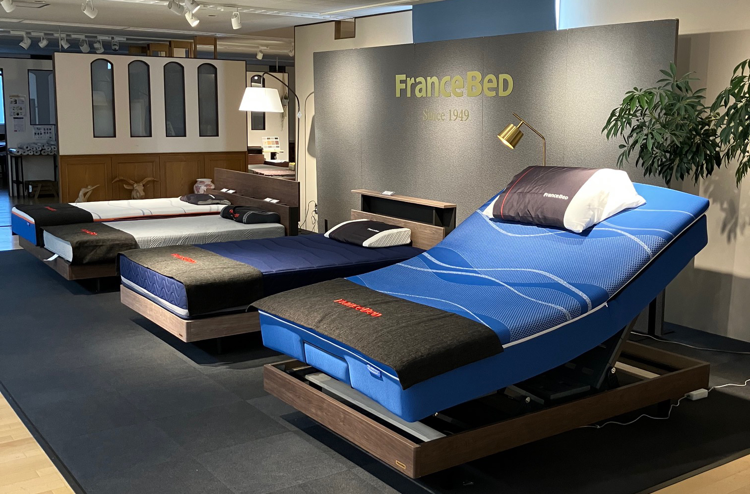 人気No.1のフランスベッドをはじめとするベッド・電動ベッドコーナーでは実際の寝心地をご体感いただけます。