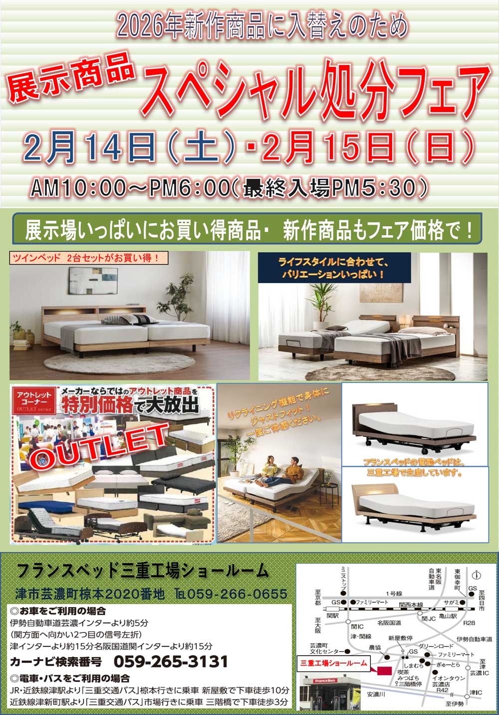 フランスベッド三重工場大開放! 新作、展示現品も全商品、特別ご優待にてご提供! |