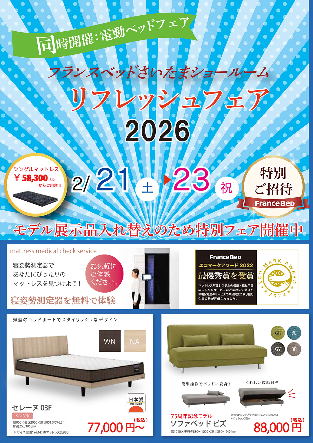 安心・安全・静音、フランスベッドの『電動リクライニングベッド』もフェア特別価格! |