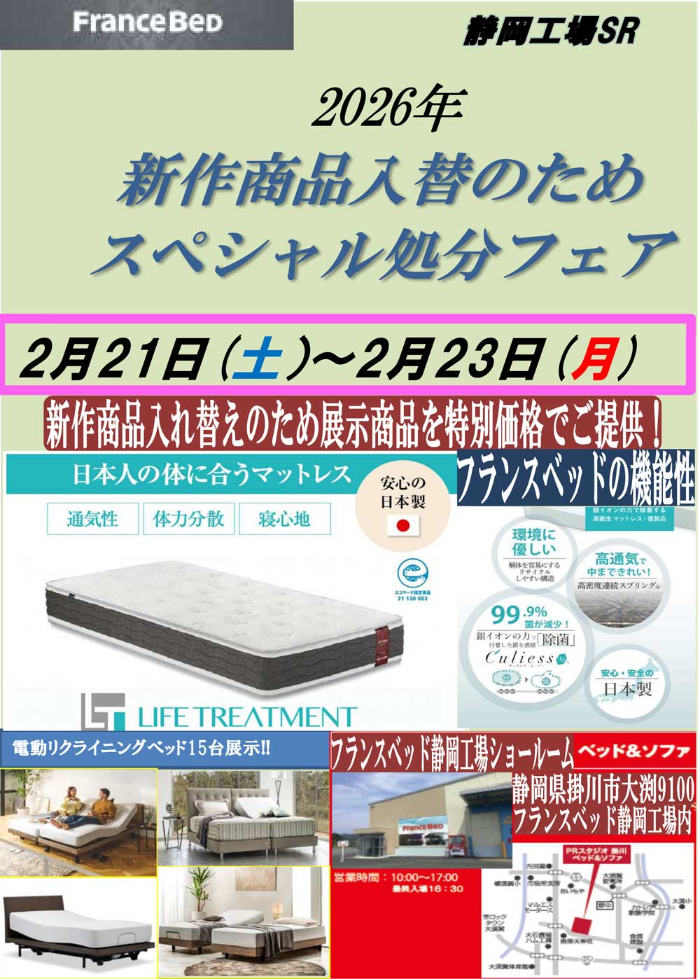 | 開催会場 | フランスベッド静岡工場ショールーム |