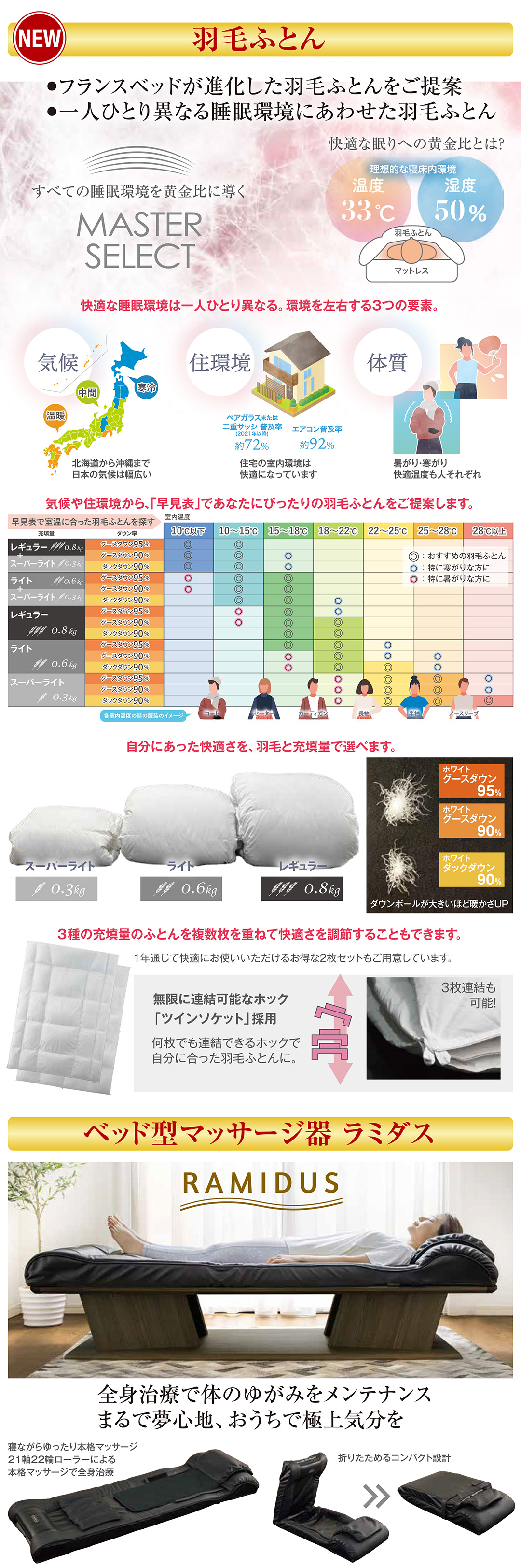 会場にて、ベッドに実際に寝て、寝心地をお確かめいただくとともに【寝姿勢測定機】の測定、判定を目安にしていただくことで効率的にお客様に合ったマットレスと枕をお選びいただけます。