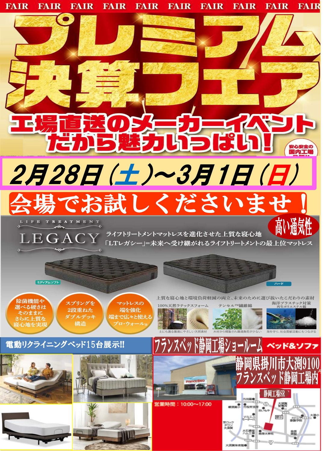 | 開催会場 | フランスベッド静岡工場ショールーム |