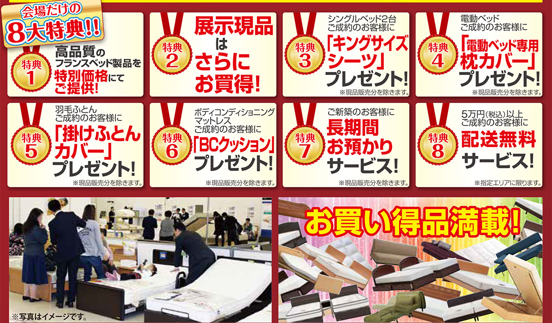CMで話題のマットレスもご体感いただけます!マットレスもセール限定特別価格にてご提供! |