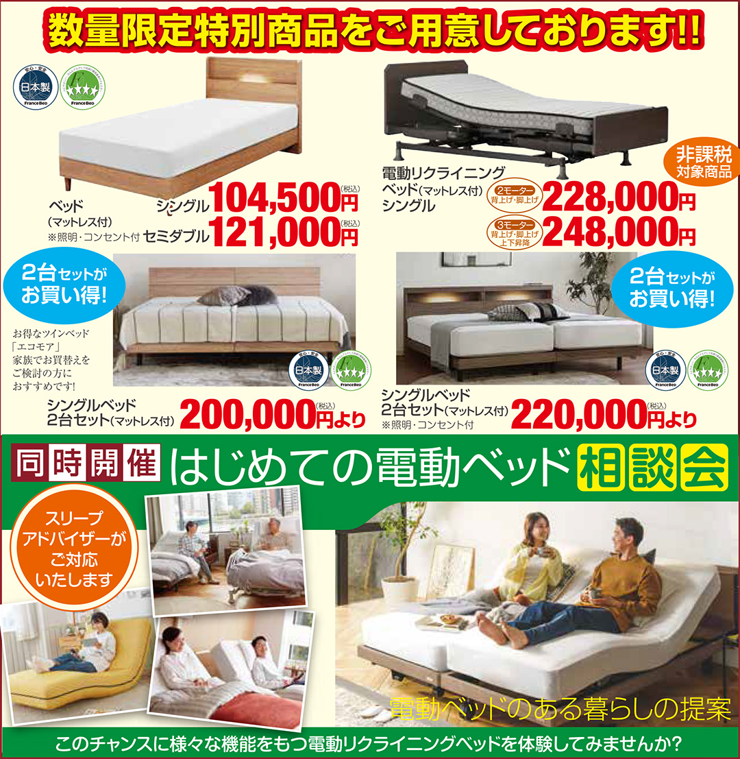 限定特別価格にてご提供いたします!たいへんお得なフランスベッド特別セールです! |