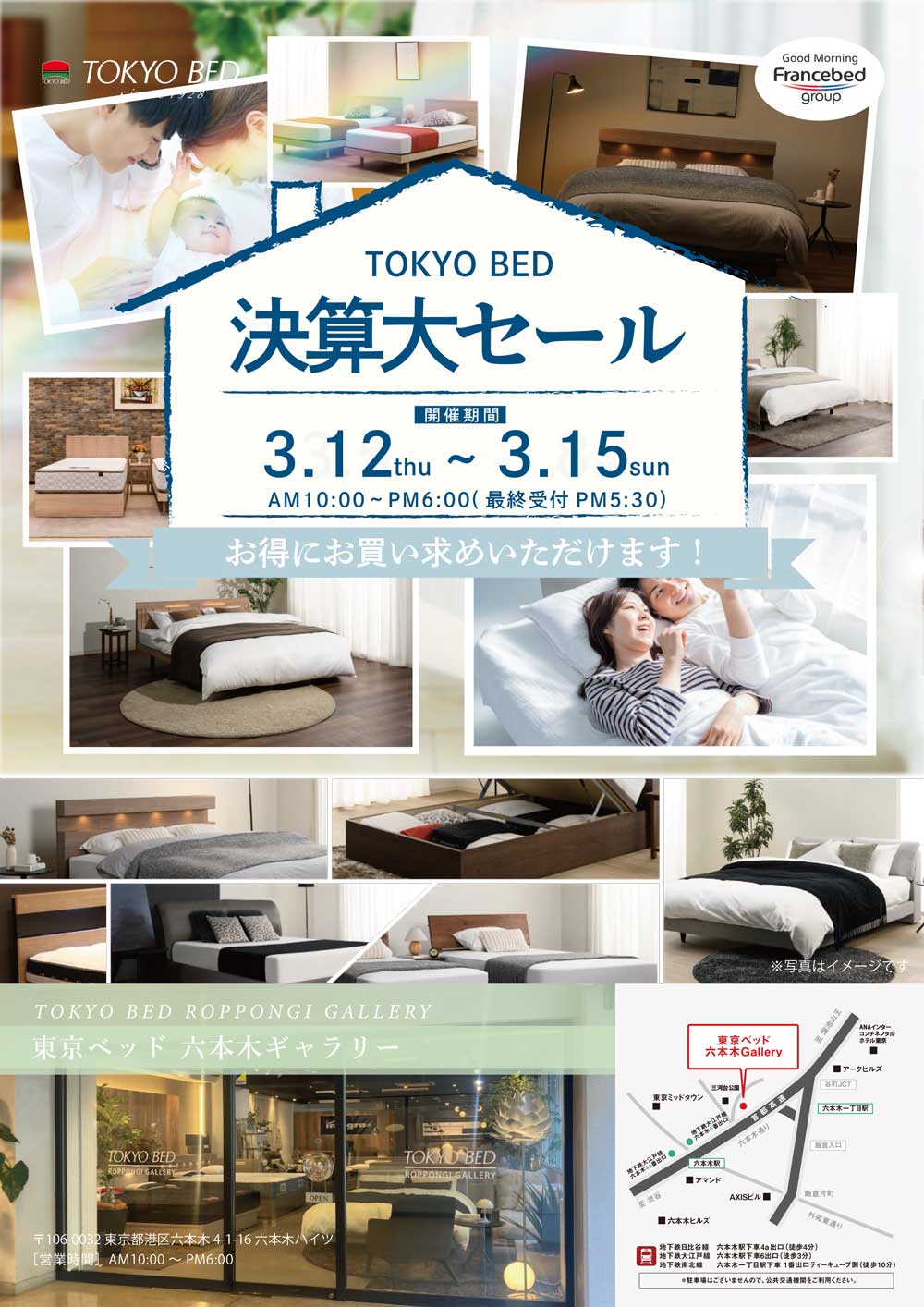高品質ベッドを、東京ベッドのバーゲン特別セールイベントならではの大特価でご提供 展示品が無くてもご優待価格でご案内! |