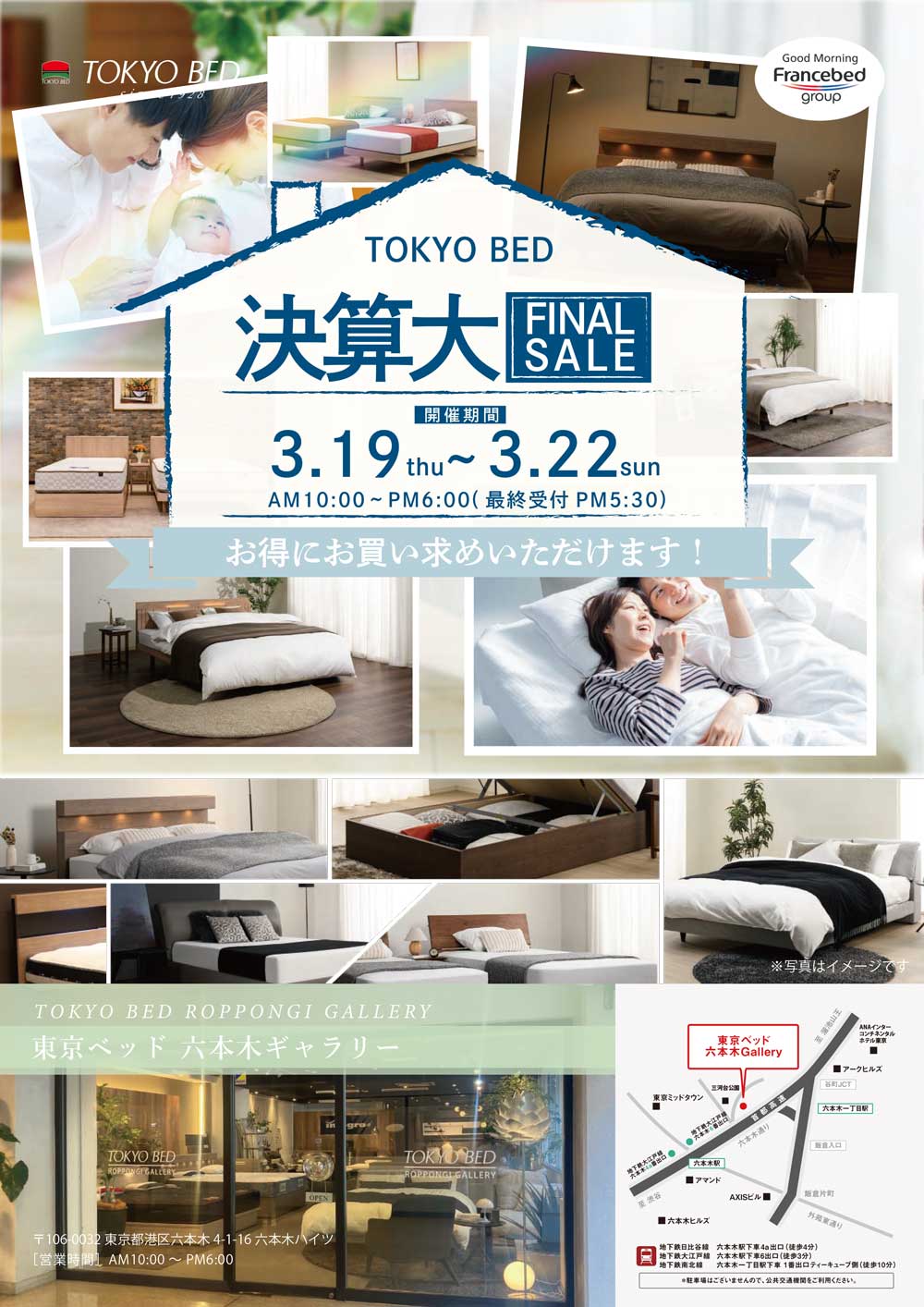 高品質ベッドを、東京ベッドのバーゲン特別セールイベントならではの大特価でご提供 展示品が無くてもご優待価格でご案内! |