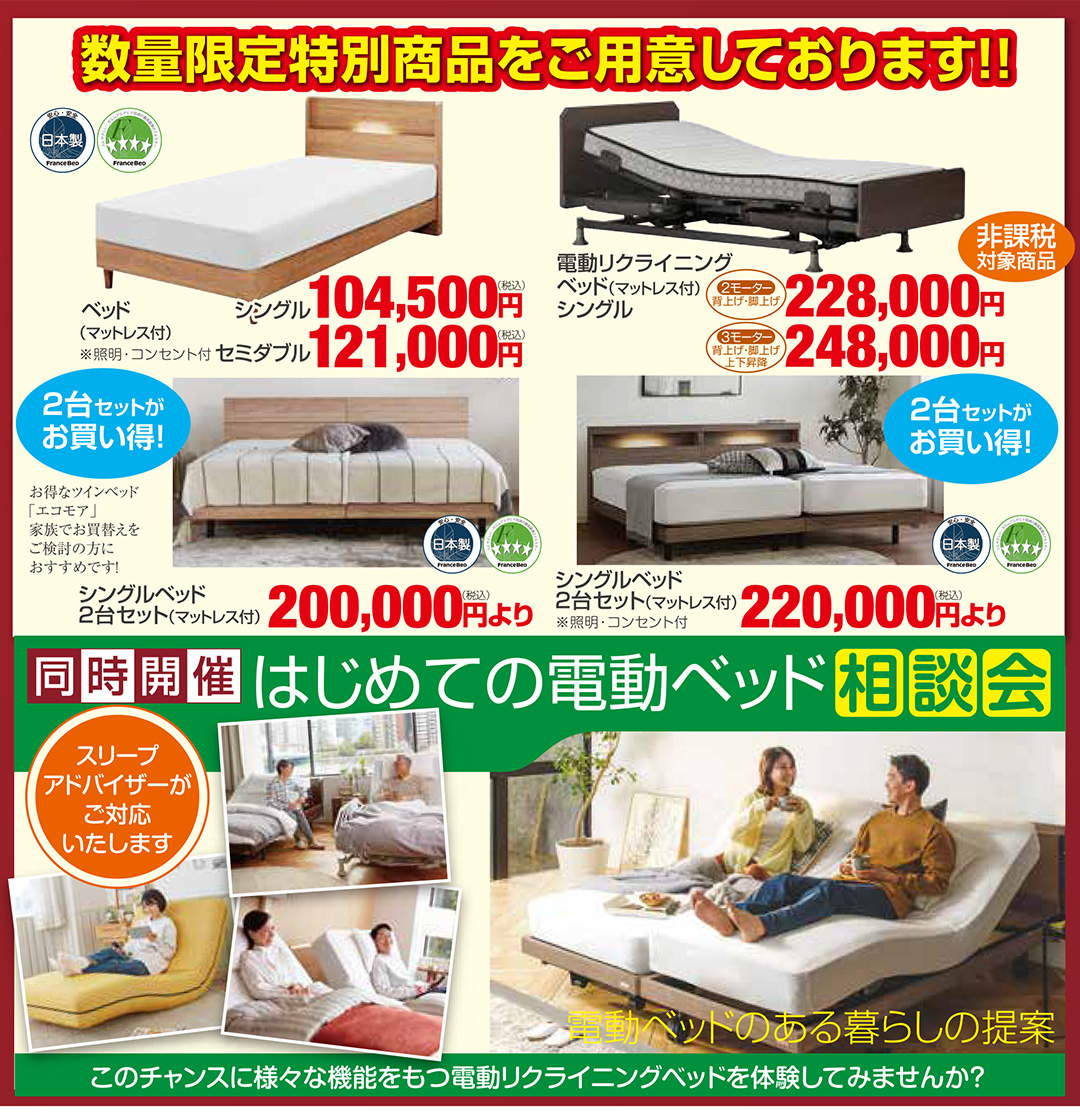限定特別価格にてご提供いたします!たいへんお得なフランスベッド特別セールです! |