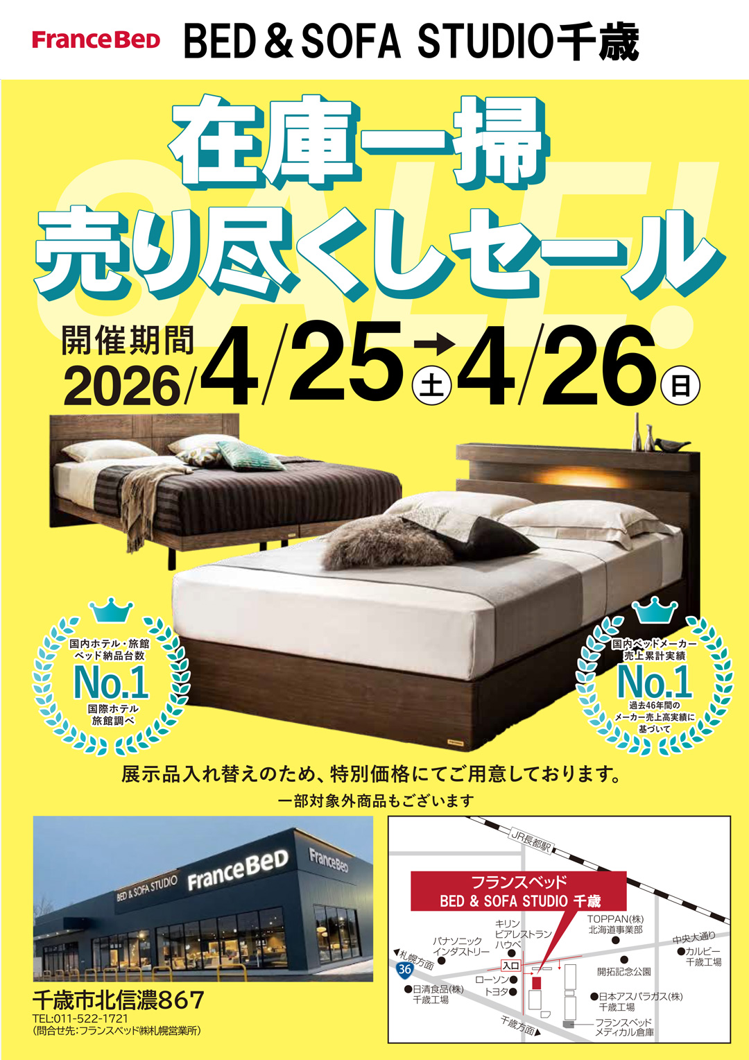 | 開催会場 | フランスベッド BED&SOFA スタジオ 千歳 特設展示会場 |