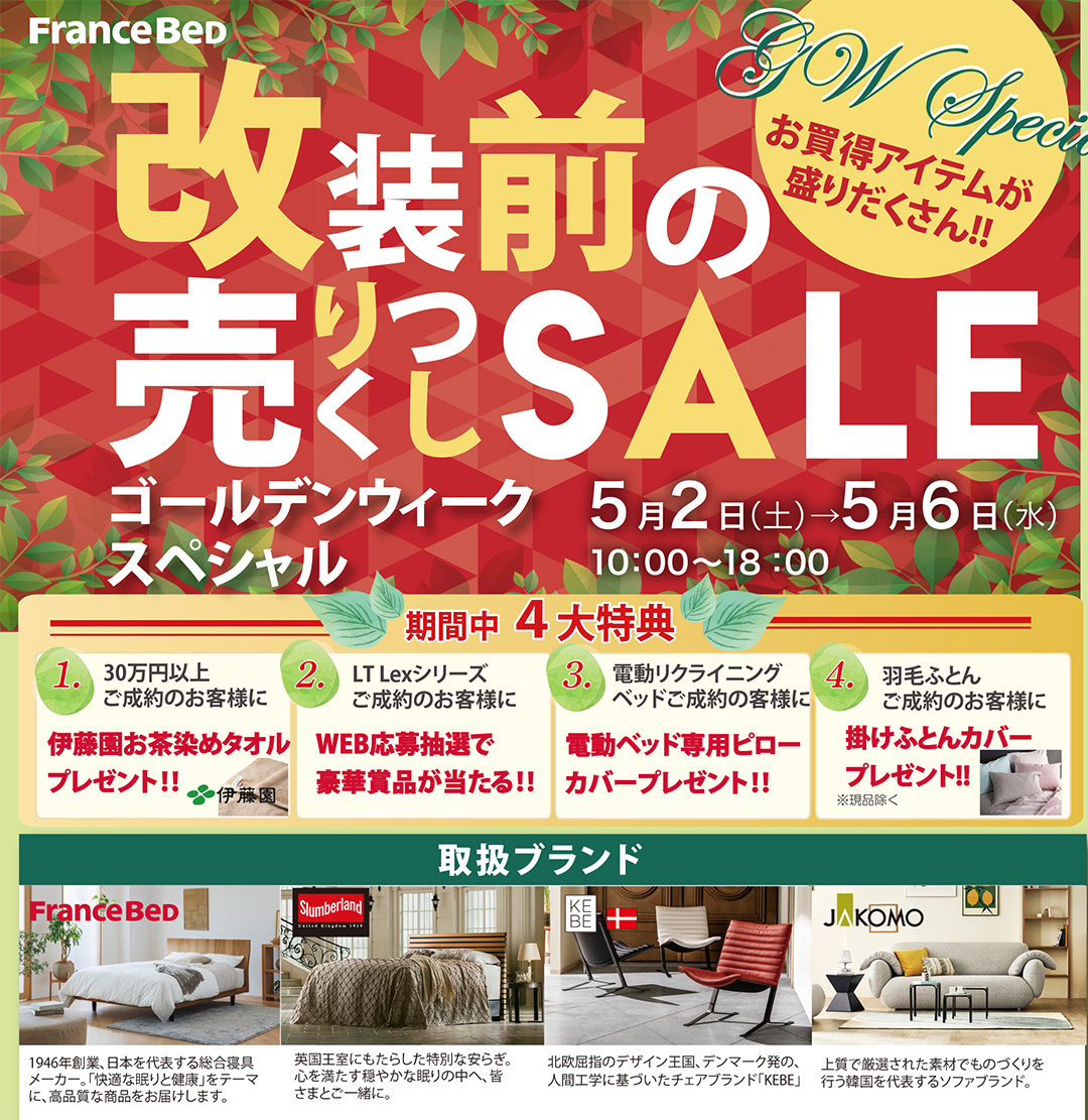 安心・安全・静音、フランスベッドの『電動リクライニングベッド』もフェア特別価格! |